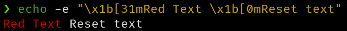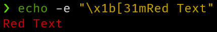 For example, the code for red text is 31. Thus, if you were to print \x1b[31m to the terminal, any text following would be red.